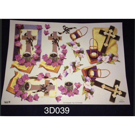 3D Embossed / Gilded Decoupage sheet - Cross & Bible