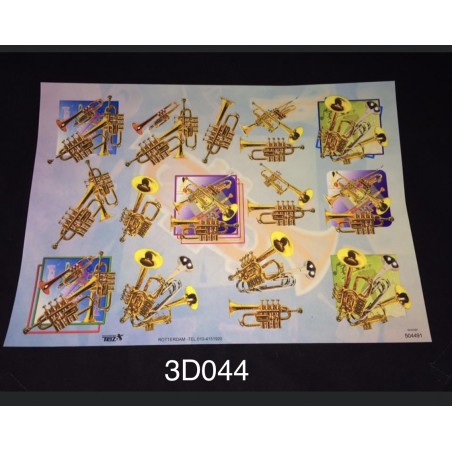 3D Embossed / Gilded Decoupage sheet - Trumpets