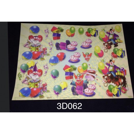 • 3D Embossed / Gilded Decoupage sheet - Birthday Clowns