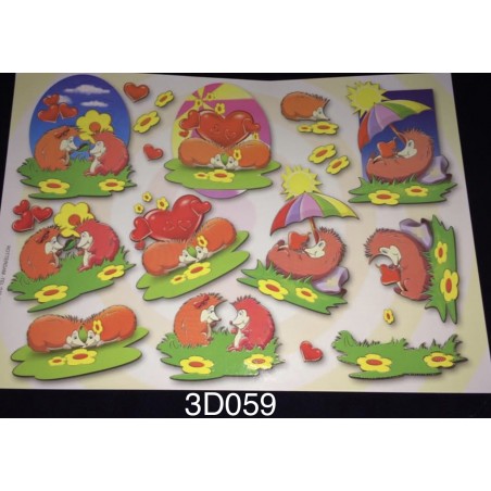 3D Embossed / Gilded Decoupage sheet - Love Hedgehog