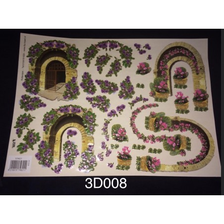 • 3D Embossed / Gilded Decoupage sheet - Flowers & Arches