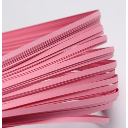 120 strips of 3mm wide quilling paper in Flamingo colour. Approximately 390mm long.